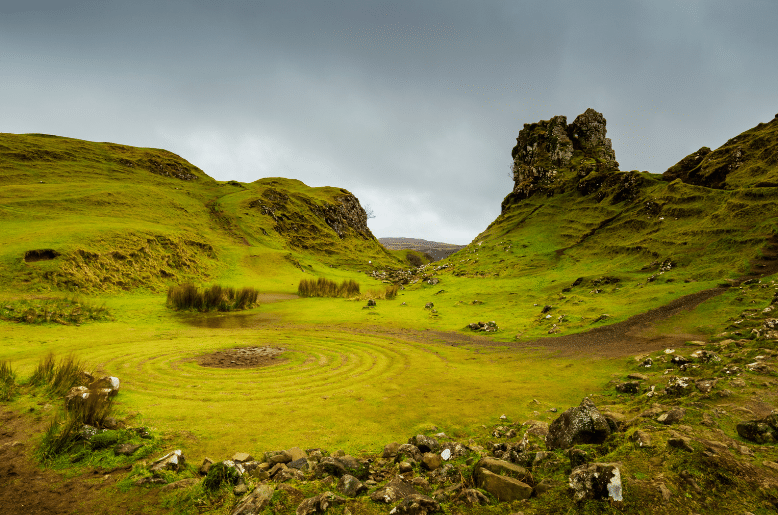 Tucked away on the Isle of Skye, Scotland, lies the bewitching Fairy Glen. To me, this landscape so enchanting it feels like it’s been plucked straight from the pages of a fairy tale. With its grassy knolls, ancient stone circles, and whimsical peaks, Fairy Glen is a place where myths come to life.